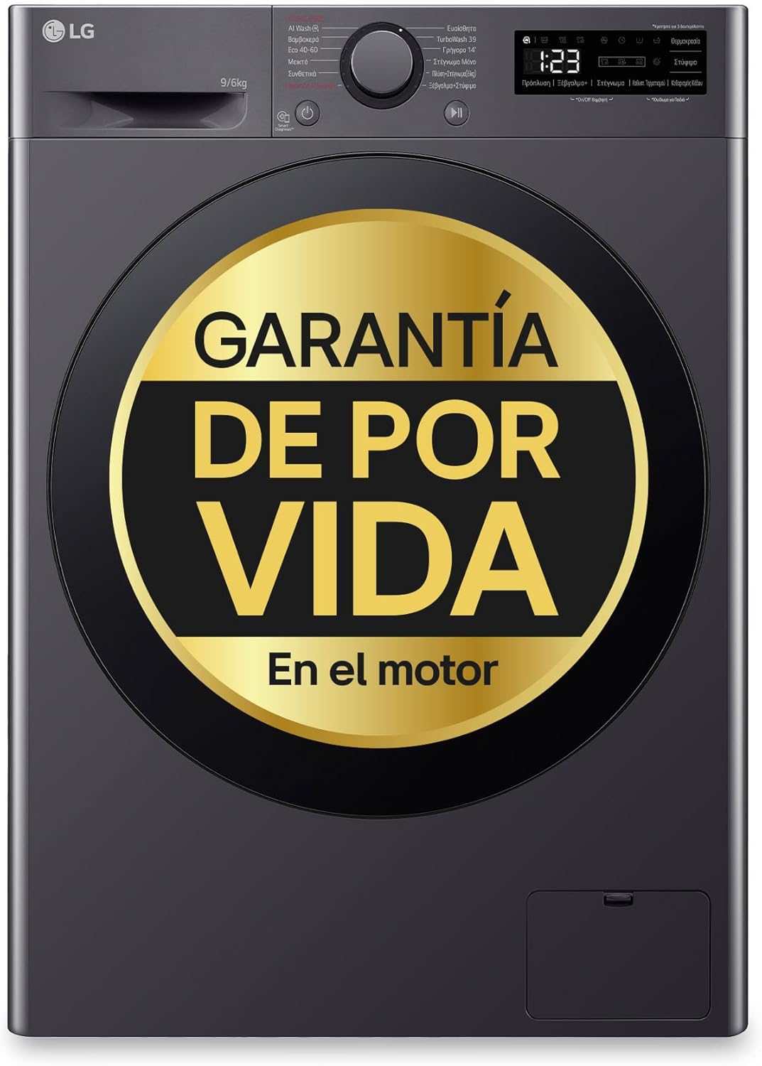 LG F4DR6009AGM - Intelligent Washing Machine Dryer, 9 6 kg, AI Direct Drive, 1400rpm, Front Load, TurboWash rotacion de 360 grados, Steam Steam, Series 600, Graphite Stainless Steel
